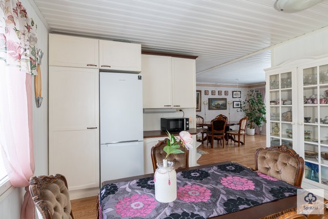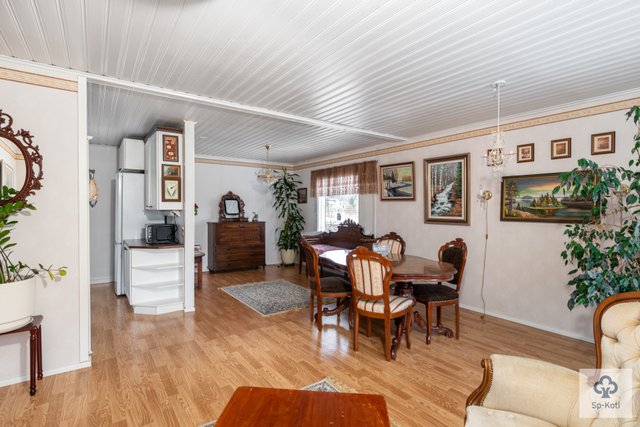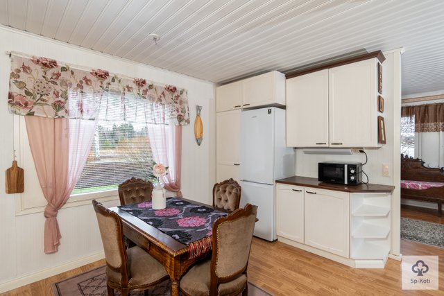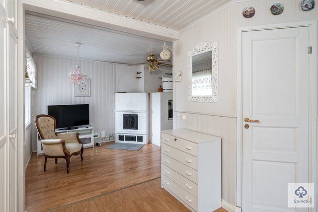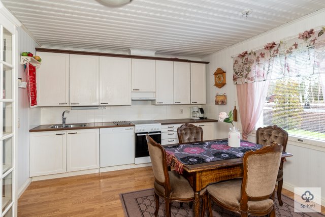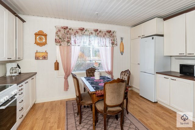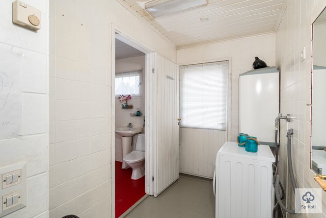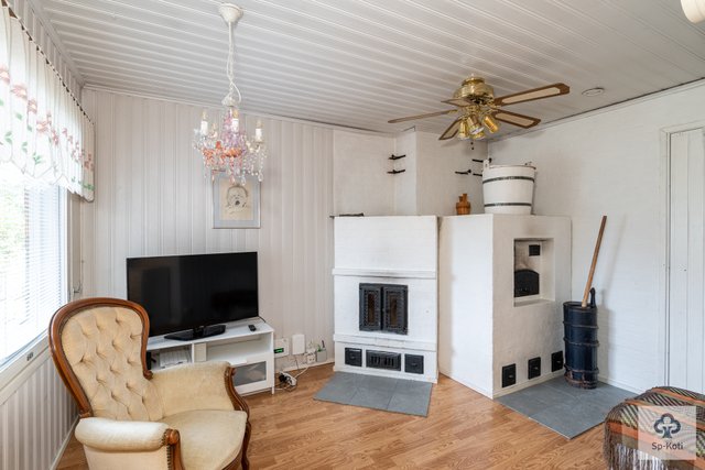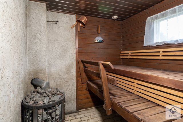 Kodissa on kaksi makuuhuonetta, viihtyisä olohuone sekä käytännöllinen keittiö, jossa on kaikki tarvittavat kodinkoneet. Lämmityksestä huolehtii sähkölämmitys sekä varaava takka, joka tuo lämpöä ja tunnelmaa erityisesti talvi-iltoina. Saunaosasto ja erillinen kodinhoitohuone tekevät arjen askareista vaivattomia, ja autotalli sekä lämmin ulkovarasto tarjoavat runsaasti säilytystilaa.