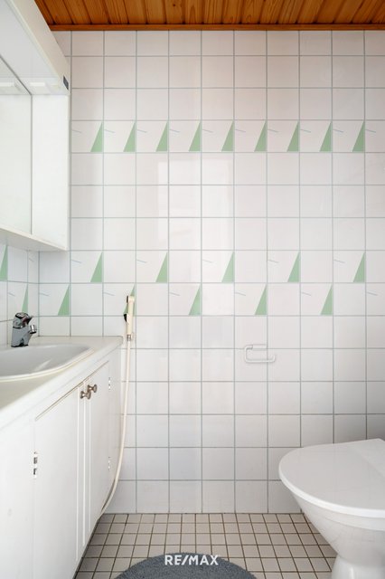- Yläkerrassa vuonna 2010 uusittu ikkunallinen, erillinen wc, jossa peilikaappi(2025), allaskaappi, korkea kaappi, wc-istuin, pesukoneliitäntä, tilaa myös kuivausrummulle. Seinät ja lattia laattaa. Alakerrassa alkuperäiskuntoinen wc, jossa peili, allas, wc-istuin. Seinät ja lattia laattaa. Molemmat tilat kosteusmitattu 9 / 2025.
