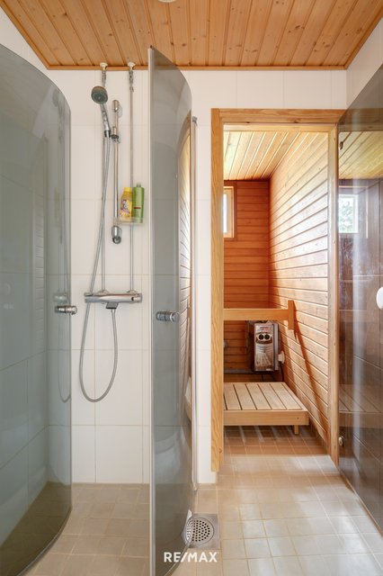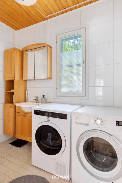 Kylpyhuone on remontoitu vuonna 2008 ja yläkerran erillinen wc on uusittu vuonna 2010.. Ikkunallinen sauna tarjoaa rentouttavat löylyt ja kodinhoitotila yläkerran wc:ssä tuo lisää käytännöllisyyttä arkeen.