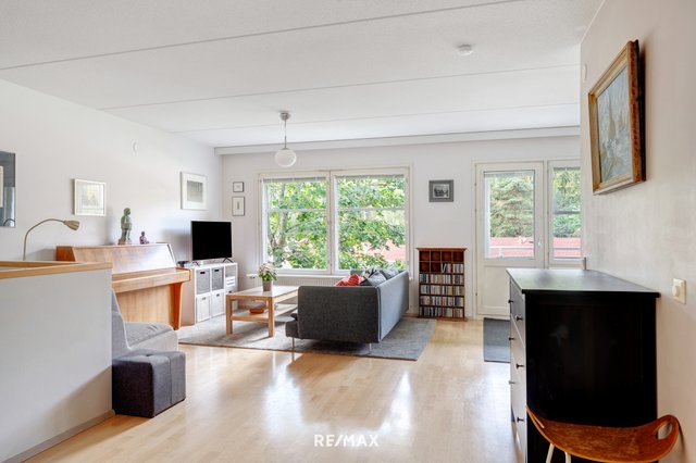 Asunnon olohuone ja keittiö avautuvat lounaaseen, mikä takaa luonnonvalon tulvimisen sisään. Vuonna 2023 uusittu moderni Epoq-keittiö on varusteltu laadukkailla kodinkoneilla ja ruokailutilasta on käynti parvekkeelle. Kolme makuuhuonetta tarjoavat runsaasti tilaa perheen tarpeisiin, ja alakerran makuuhuoneesta on suora yhteys omalle pihalle.