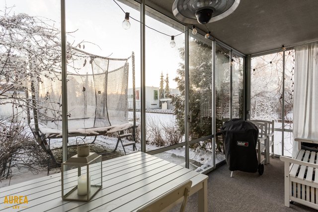 - Avara ja valoisa olohuone, jossa isot ikkunat. Olohuoneesta käynti lasitetulle terassille.