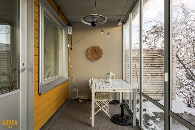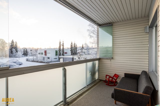 - Iso huoneiston levyinen lasitettu terassi ja lisäksi yläkerrassa huoneiston levyinen lasitettu parveke.