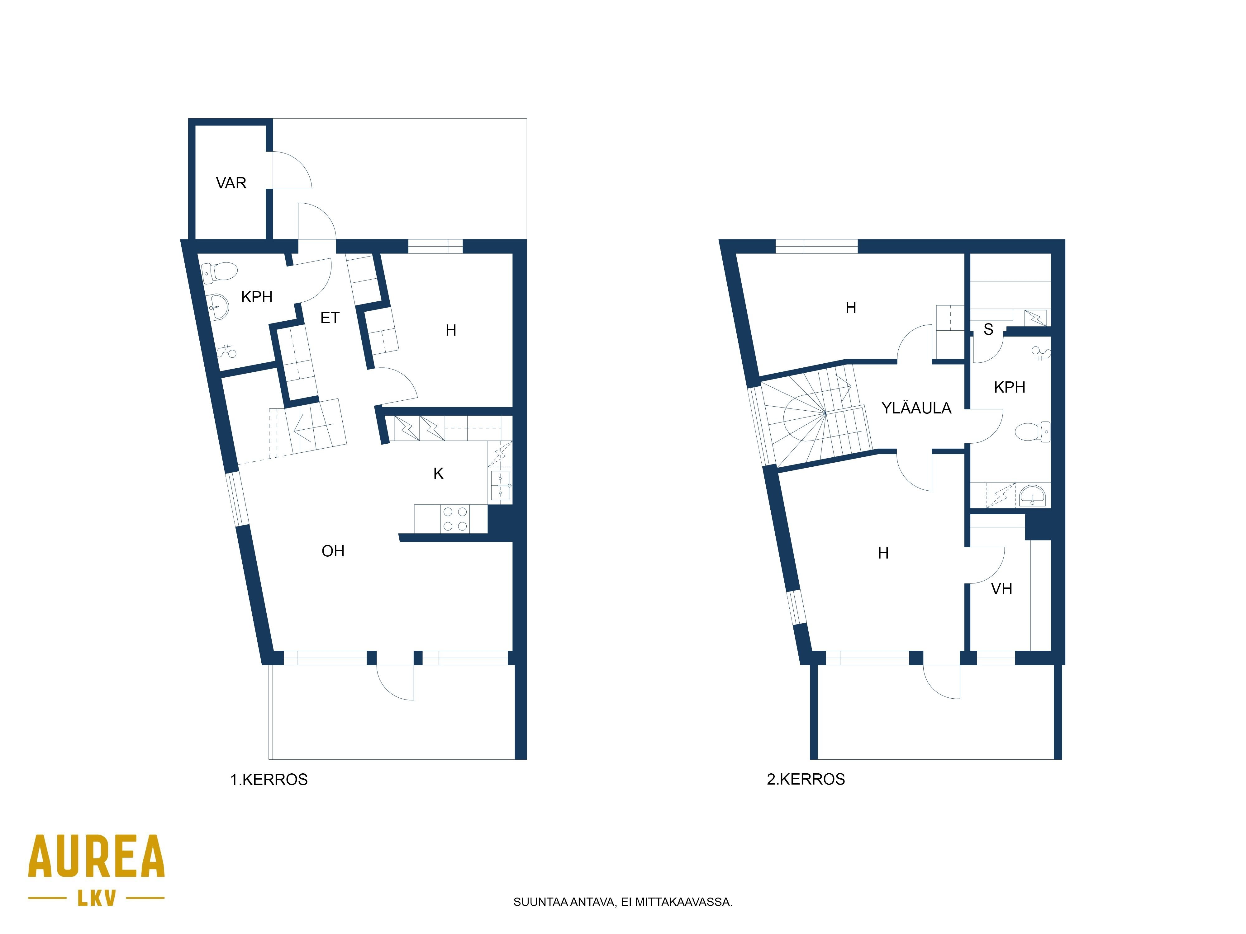 - Alakerrassa erilinen wc ja yläkerran kylpyhuoneeessa toinen wc-tila.