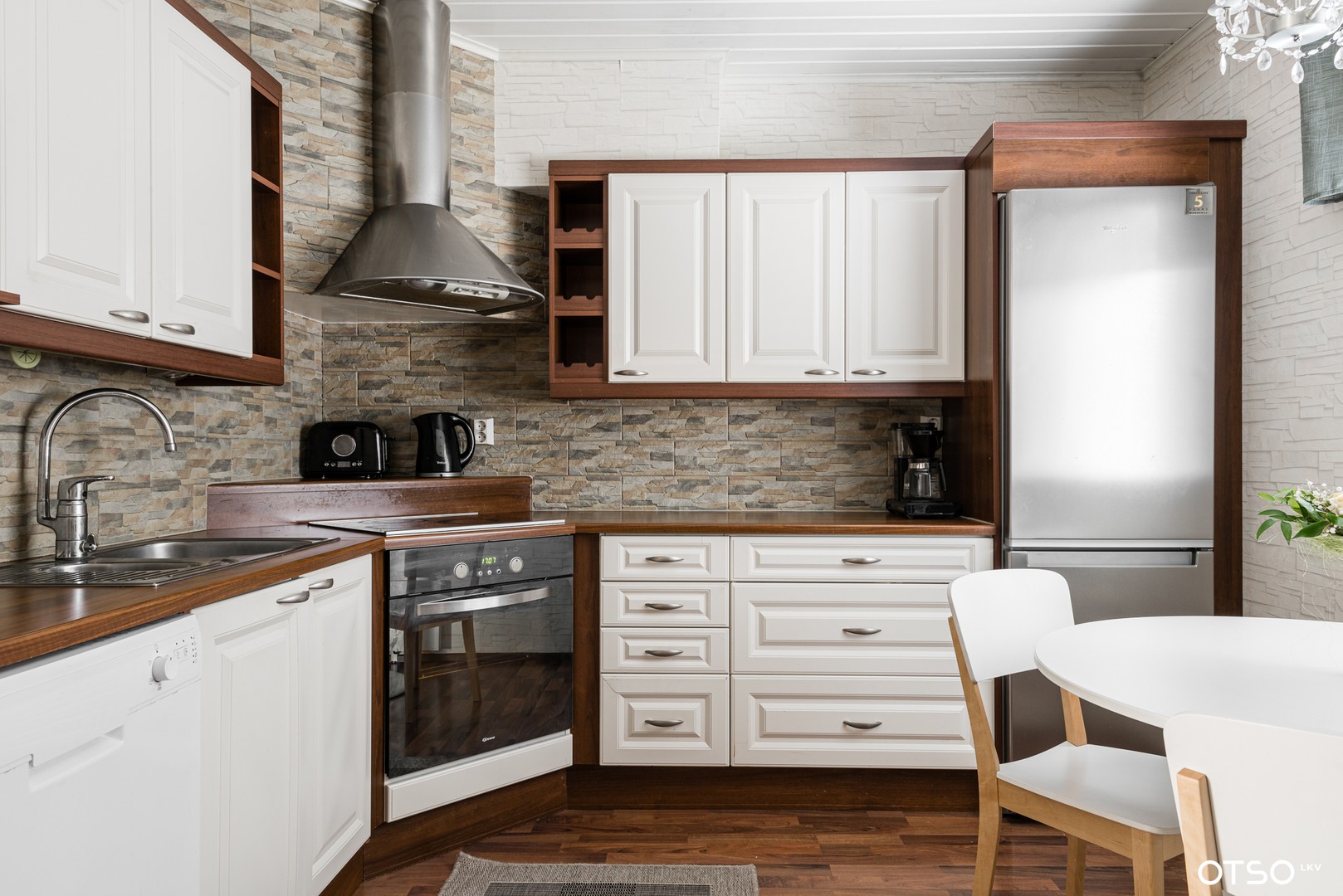 - Astianpesukone, kiinteät valaisimet, jääkaappipakastin, ja liesi