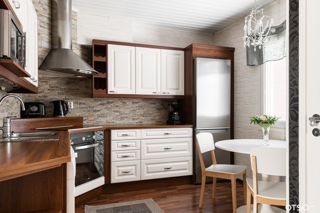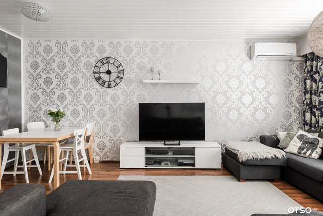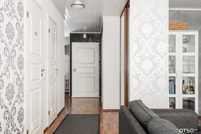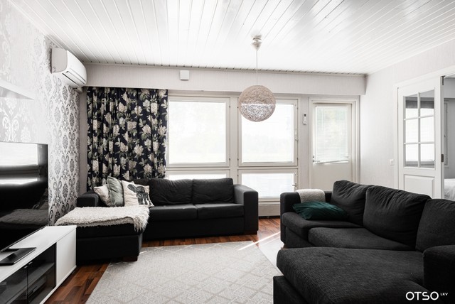 - Kaapistot, sälekaihtimet/rullaverhot, kiinteät valaisimet, lämminvesivaraaja, ilmalämpöpumppu (2021), huoneistokohtainen jäähdytyskone.