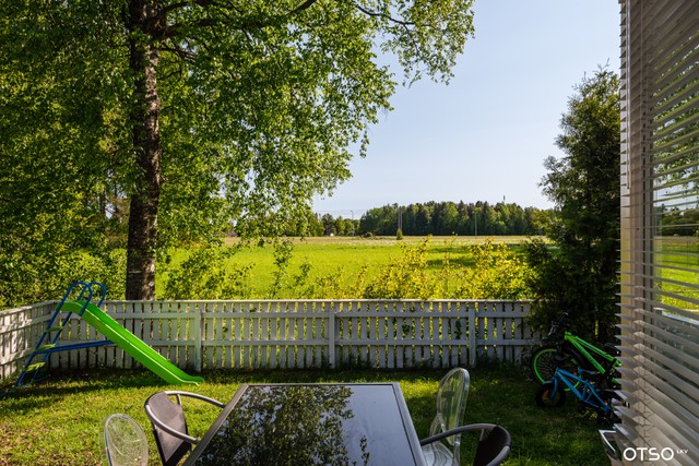 Terassilla kelpaa kesäpäivän jätskit nauttia, mukavan rauhallinen näkymäkin peltoaukealle..