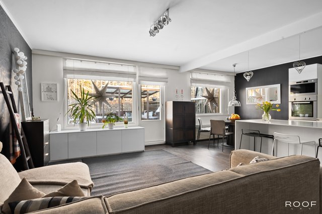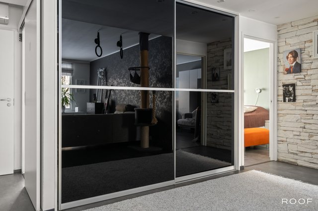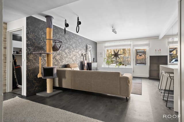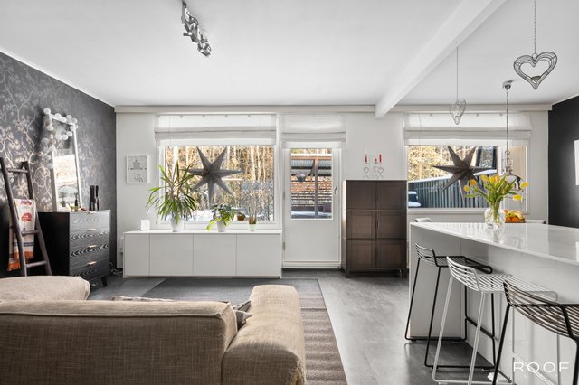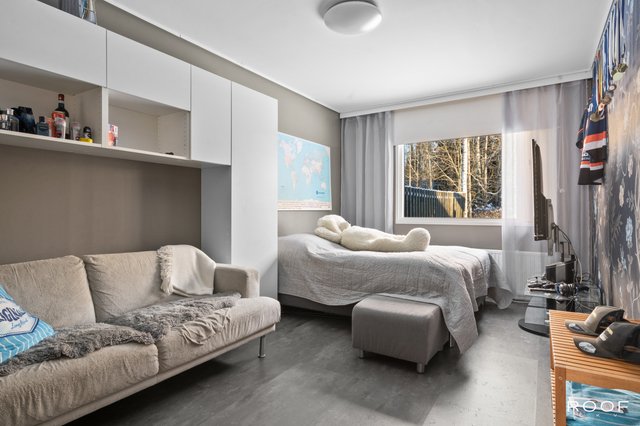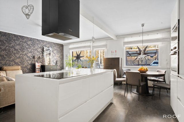 Kodin oma aidattu piha avautuu kauniisiin metsämaisemiin, tarjoten rauhallisen paikan rentoutumiseen. Asunnossa on kolme makuuhuonetta, joten tilaa riittää isommallekin perheelle. Keittiö on hyvin varusteltu, ja siellä on muun muassa saareke sekä induktioliesi, mikä tekee ruoanlaitosta nautinnollista.