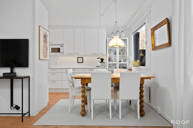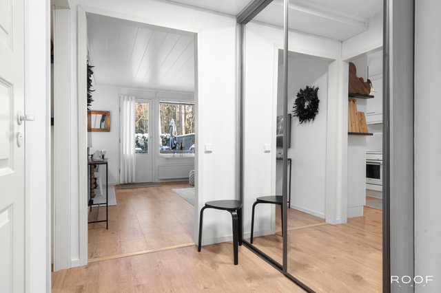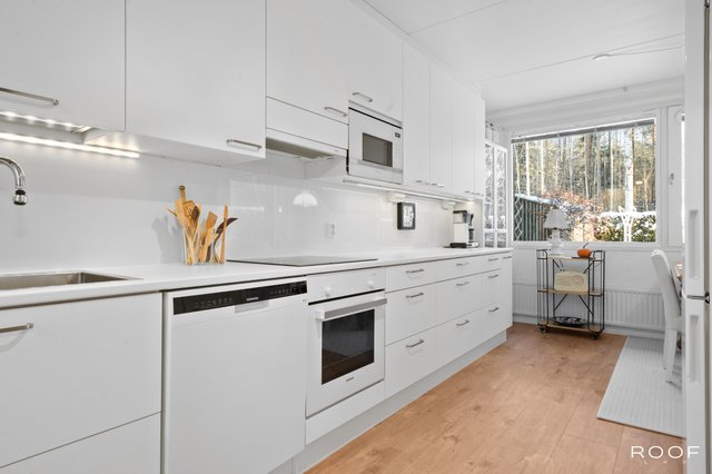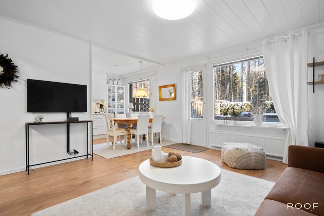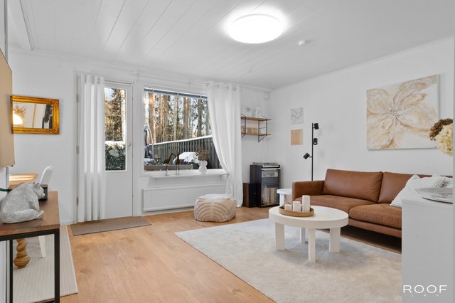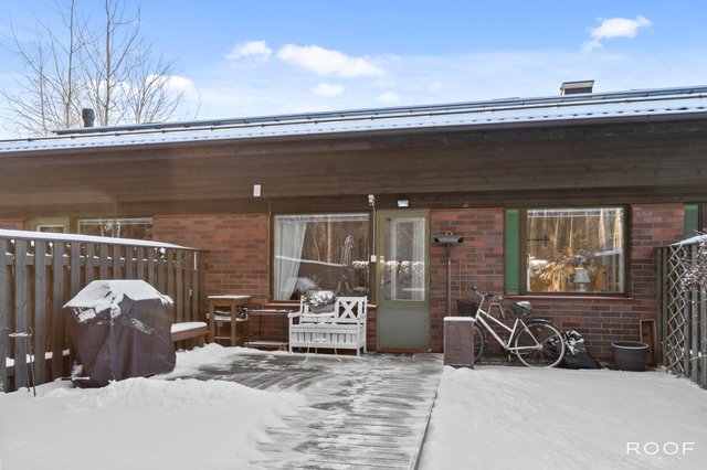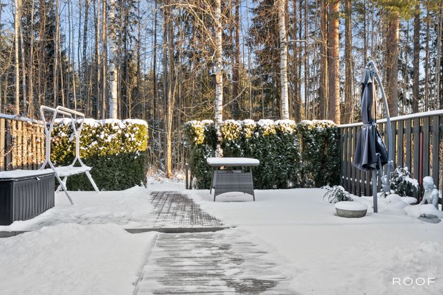 Oma aidattu piha avautuu kauniiseen metsämaisemaan, joka tuo luonnon aivan kotiovelle. Asunnon sisätilat ovat hyvässä kunnossa, ja keittiö on varusteltu nykyaikaisilla laitteilla, kuten induktioliedellä ja astianpesukoneella. Sauna tarjoaa rentouttavat löylyt kiireisen päivän päätteeksi.