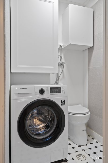 - vanhasta kylmiötilasta, joka on muutettu wc/märkätilaksi löytyy pesukoneliitäntä ja laatta lattia.