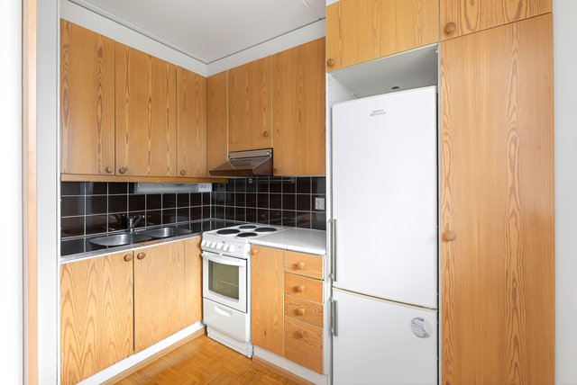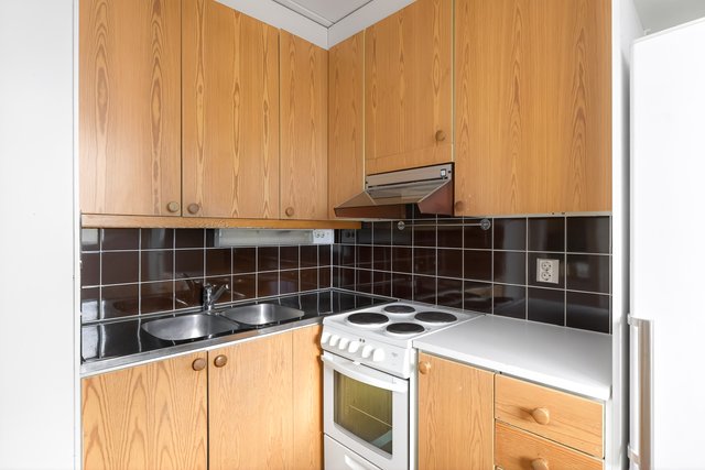 Asunto on muuten hyvässä kunnossa, ainoastaan keittokomero kaipaa uudistamista. Lattiat ovat parkettia ja seinät on maalattu. Kylpyhuone on kauttaaltaan laatoitettu.