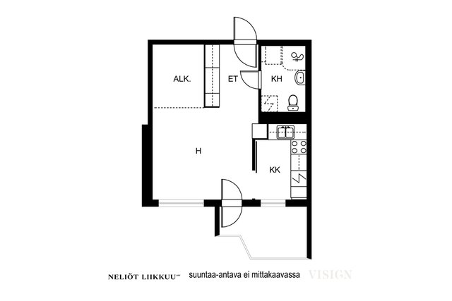 - Yhtiöjärjestyksen mukainen, Isännöitsijäntodistuksen mukainen, (Pinta-ala ei ole tarkistusmitattu ja todellinen pinta-ala voi olla suurempi tai pienempi, kuin ilmoitettu)