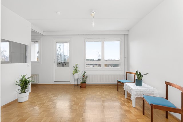 Tämä tilava hissitalon 5:nen kerroksen asunto tarjoaa avarat näkymät ja valoisat asuintilat niin sisätiloissa kuin lasitetulla parvekkeellakin.