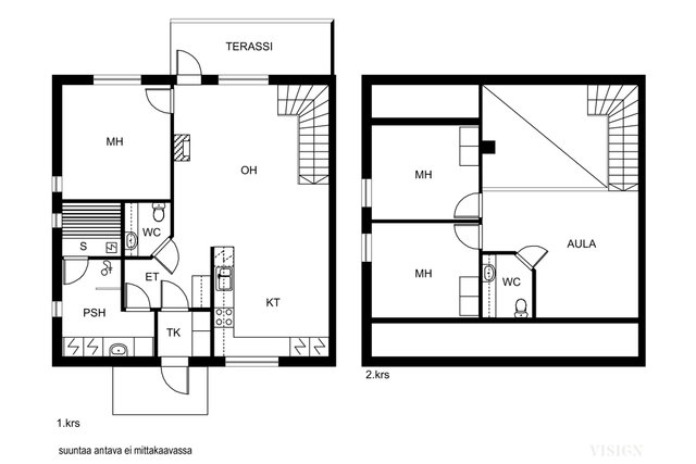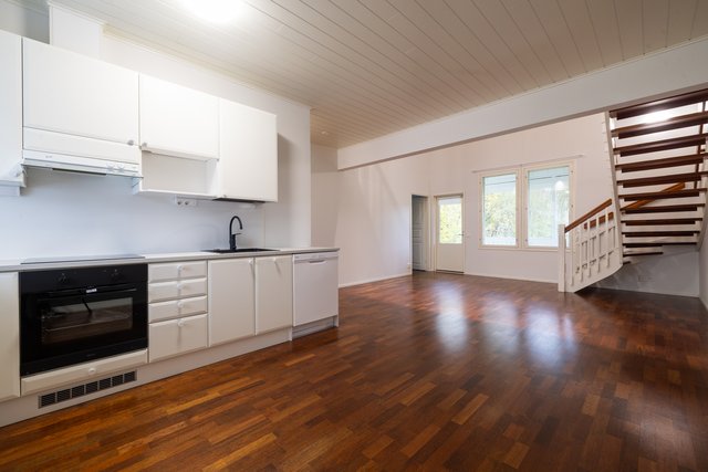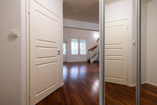 - Lattiat pääosin Merbau-parketilla, kosteat tilat laatalla.