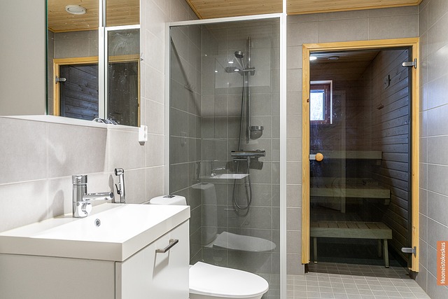 - Suihkuseinä, pesukoneliitäntä, wc-istuin, peilikaappi, suihku, allaskaappi, lattialämmitys, ja kiinteät valaisimet