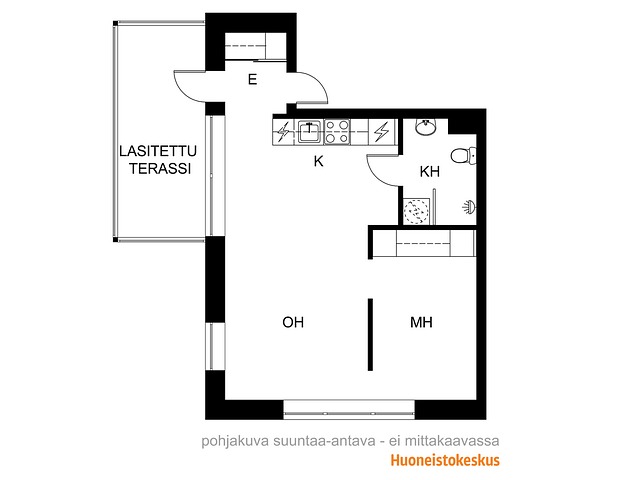 - Suihku, wc-istuin, lattialämmitys, peilikaappi, pesukoneliitäntä, suihkuseinä, ja allaskaappi