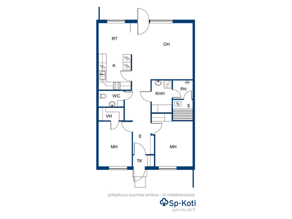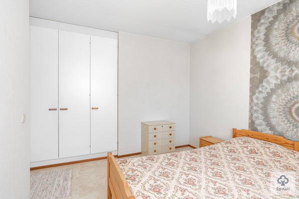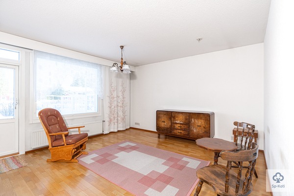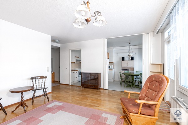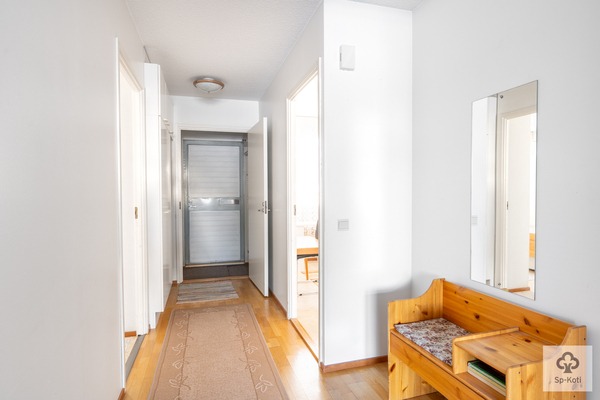 Erittäin järkevän pohjaratkaisunsa ansiosta huoneiston väljät tilat on saatu otettua täysin asujiensa käyttöön ilman turhia kulkukäytäviä.