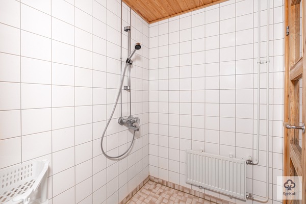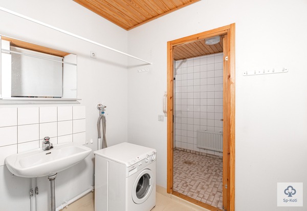 Erillinen wc löytyy myös, kodinhoitotilan läpi pääset kylpyhuoneeseen ja saunaan.