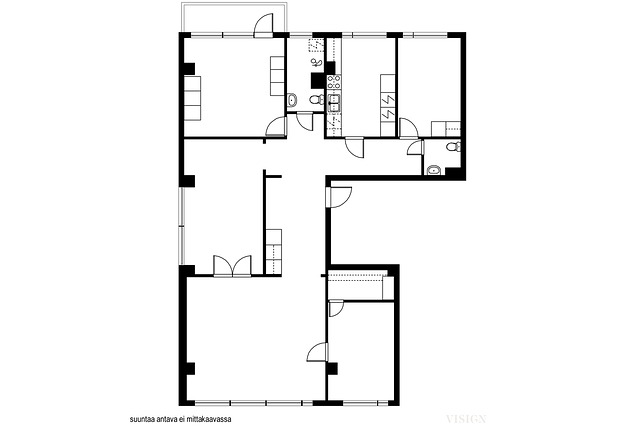 - Peili, pesukoneliitäntä, allaskaappi, suihku, wc-istuin, ja kiinteät valaisimet