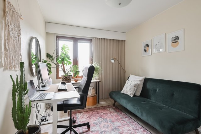 Asunnossa on kaksi makuuhuonetta, jotka tarjoavat tilaa perheelle tai työtilaksi. Olohuone ja keittiö muodostavat viihtyisän kokonaisuuden, jossa on helppo viettää aikaa perheen ja ystävien kanssa. Keittiö on hyvin varusteltu ja asunnossa keittiö ja olohuone on hienosti yhdistetty omaksi kokonaisuudeksi. Siinä on hieno viettää aikaa perheen ja ystävien kanssa. Olohuoneesta on kulku omalle terassille, jossa voi kesällä grillailla ja viettää aikaa. Asunnon oman saunan löylyissä on mukava rentoutua päivän päätteeksi. Kodissa löytyy myös kaksi erillistä wc:tä, mikä tuo arkeen sujuvuutta.