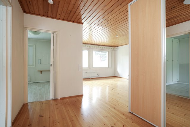 - Makuuhuoneissa ja takkahuoneessa laminaatin alle on jätetty lautalattia.