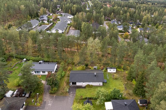- Tasainen tontti tien päässä, joka rajoittuu VP-alueeseen ja naapuri vain yhdellä rajalla,