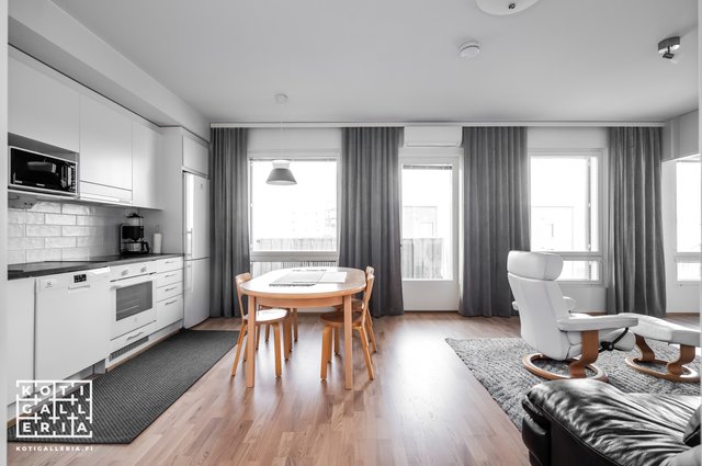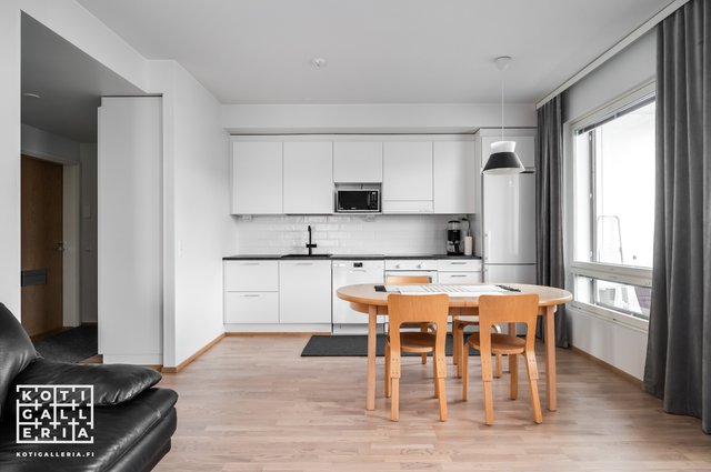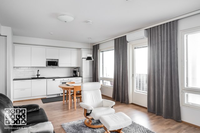 Keittiö ja olohuone ovat samaa tilaa; täällä on avaraa ja ilmavaa: tämä koti on helppo sisustaa. Asunnossa ei ole patterit näkösällä mikä helpottaa sisustusratkaisujen tekoa sekä tuo ylellisen yleisilmeen tälle kodille. Taloyhtiö on kaukolämmössä mikä osaltaan mahdollistaa edulliset asumiskustannukset.