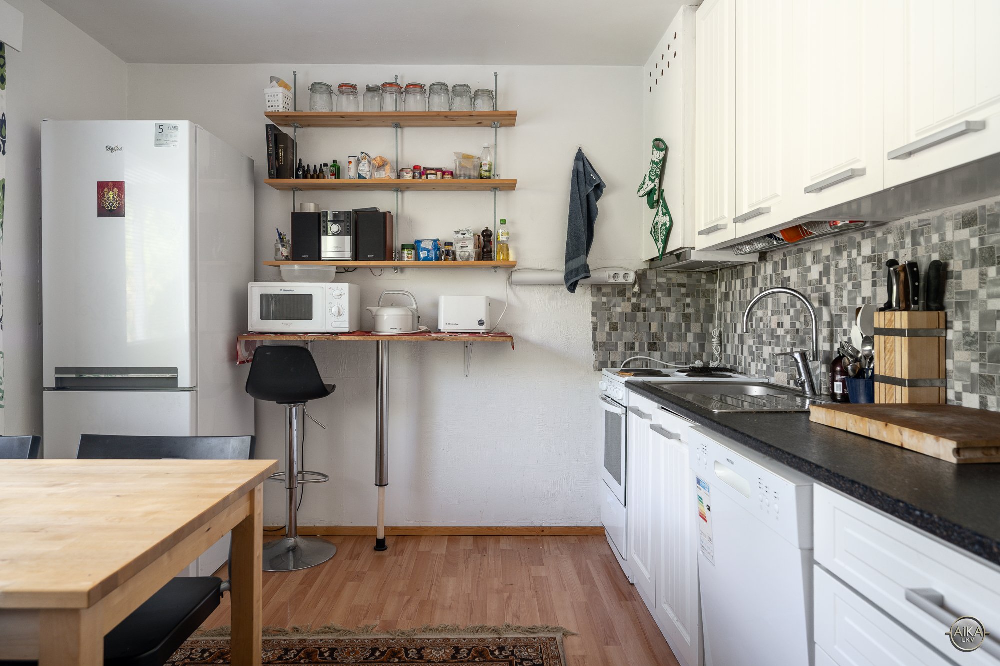- Jääkaappipakastin, liesi, ja astianpesukone