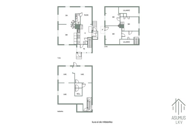 - RUOKAILUTILA keittiön yhteydessä. ETEISKUISTI sijaitsee pääsisäänkäynnin yhteydessä. Kuistilta käynti keittiön kautta alakerran tiloihin sekä rappuja pitkin yläkertaan. Pieni KUISTI, johon käynti sisäpihan puolelta ja kuistin kautta toinen sisäänkäynti keittiöön. Yläkerran AULA, jossa ilmalämpöpumppu ja käynti sivuvintille. KELLARIKERROS, joka on matalaa tilaa (n. 170 cm korkeaa). Kellaritilassa betonilattia, varastotilaa, puuvarasto ja lämminvesivaraaja.
