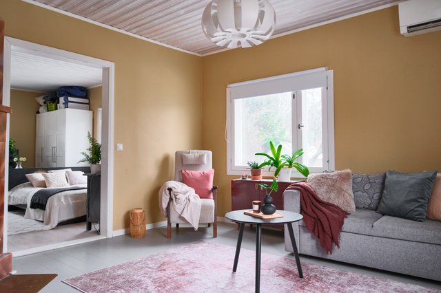 Talon sisätilat ovat hyvässä kunnossa, ja ne on remontoitu laajasti vuosina 2016–2017. Kaunis varaava takka olohuoneessa luo lämpöä ja tunnelmaa, kun taas ilmalämpöpumput tarjoavat lisälämpöä talvella ja viilennystä kesällä. Keittiö on remontoitu tyylikkäästi valkoiseksi, ja siellä on kaikki nykyaikaiset mukavuudet ja lisänä puuliesi kuparisella huuvalla.