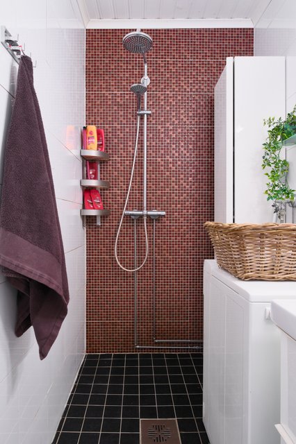 - Alakertaan on remontin yhteydessä vuonna 2017 tehty kylpyhuone/wc-tila. Kauttaaltaan laatoitetussa tilassa on paikka pyykinpesukoneelle.