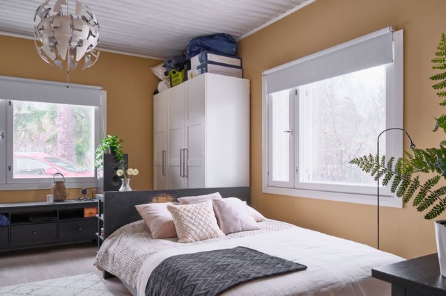 - Neljä erillistä makuuhuonetta, joista yksi sijaitsee alakerrassa toimien ns. päämakuuhuoneena. Päämakuuhuoneessa on kaunis varaava takka. Yläkerrassa sijaitsee kolme erillistä makuuhuonetta, joista yhden yhteydessä on wc-tila ja käynti sivuvintille. Yläkerran lämmönlähteinä toimii kaksi Porin Mattia ja pieni puuliesi. Puulieden kunnosta ei ole tietoa, sillä sitä ei ole käytetty.