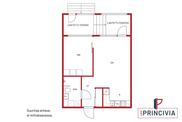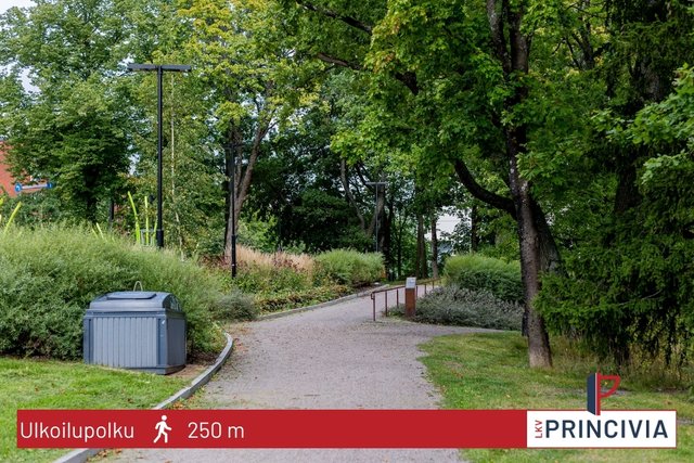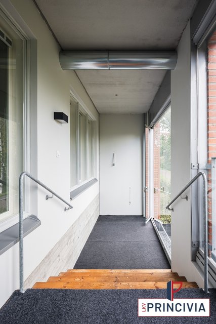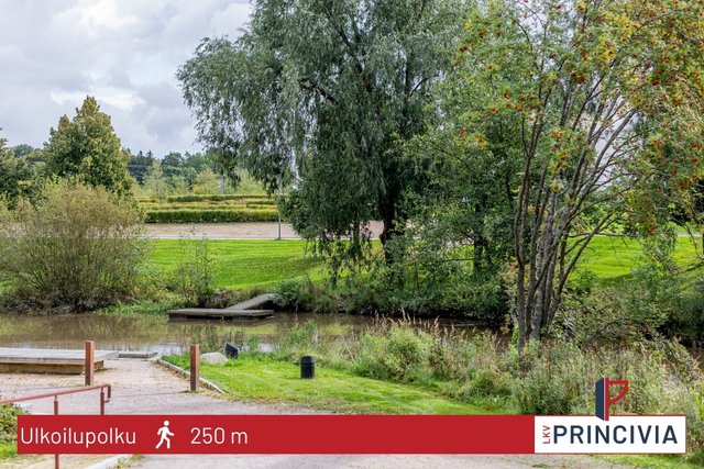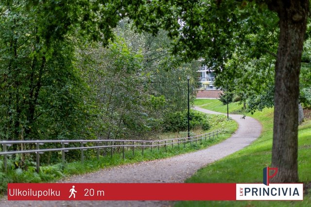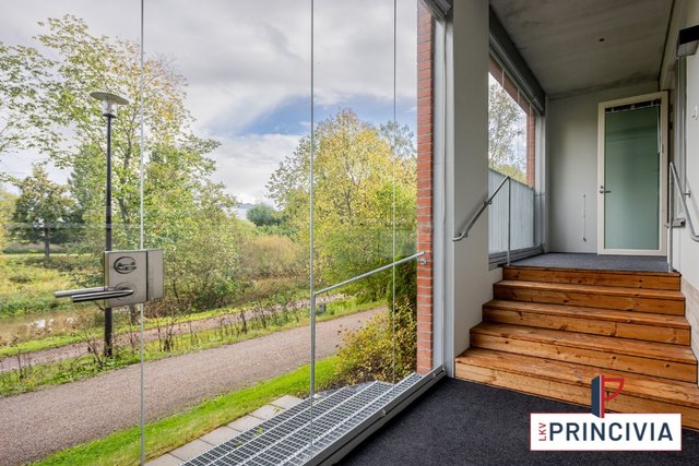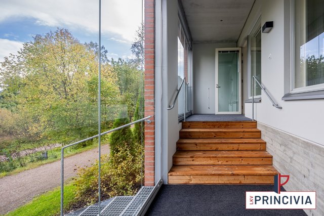 - Lasitettu terassiparveke kahdessa tasossa, josta esteetön näkymä Keravanjoelle. Terassin lasiovi toimii myös toisena käyntiovena (samalla avaimella, kuin huoneisto-ovi), josta suora kulkuyhteys ulkoilupolulle.