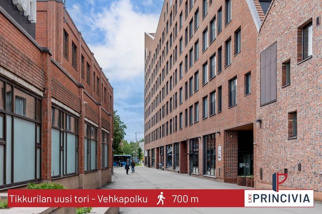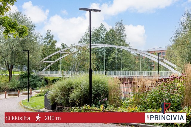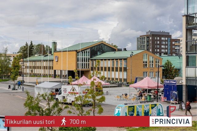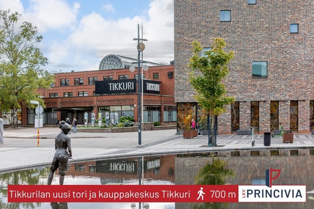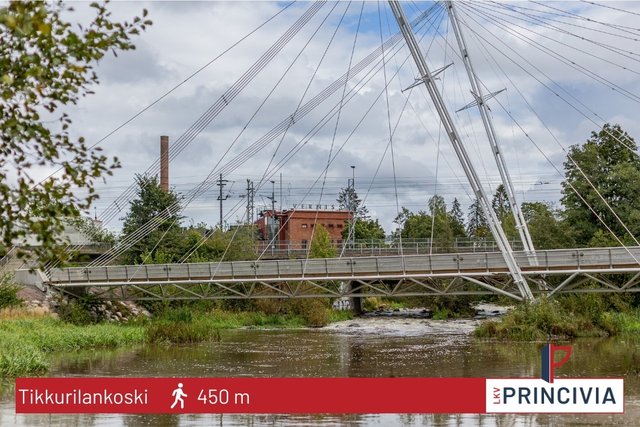 Asunnon sijainti ei tästä enää parane; rautatieasema monipuolisine palveluineen on vain lyhyen kävelymatkan päässä ja tulevan Vantaan ratikan suunniteltu pysäkki vain parin korttelin takana. Keravanjoen rantaa myötäilevät ulkoilureitit avaavat upeat ja vaihtelevat maisemat liikuntaharrastuksiin. Läheltä löytyvät Carl Albert Edelfeltin aukion, kauppakeskus Tikkurin, tiedekeskus Heurekan, Tikkurilan uuden torin ja kirkon lisäksi monet tasokkaat, kansainvälisiä makuelämyksiä tarjoavat ravintolat.
