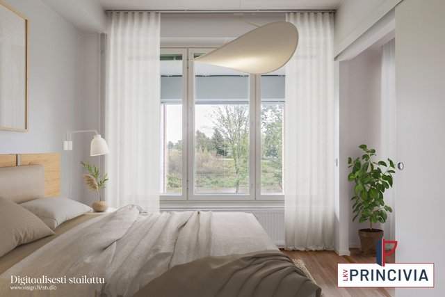 - Esteetön näkymä makuuhuoneesta ja olohuoneesta Keravanjoelle.