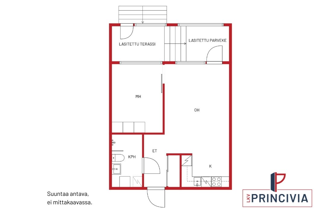 - Terassilla/ parvekkeella tasoero ja portaat.