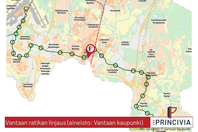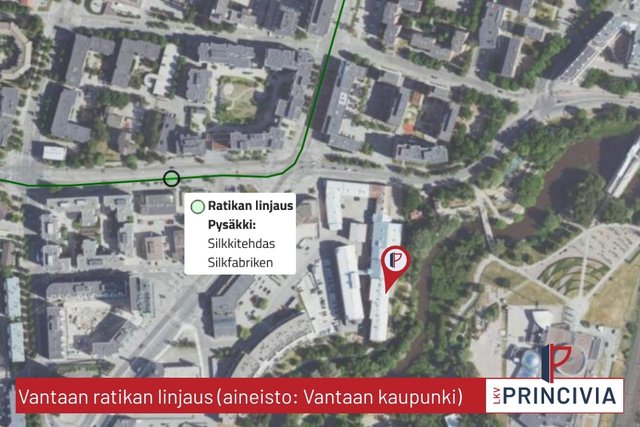 - Loistavat liikenneyhteydet niin julkisilla kulkuvälineillä, kuin omalla autollakin. Tulevan Vantaan ratikan suunniteltu pysäkki vain parin korttelin päässä.