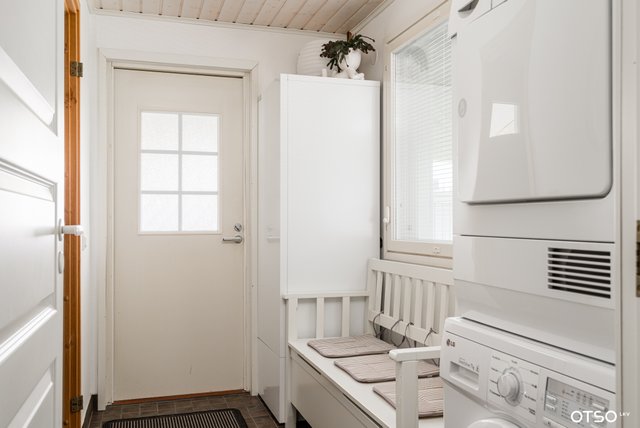 - Pesukoneliitäntä, lämminvesivaraaja, ja tila pesutornille