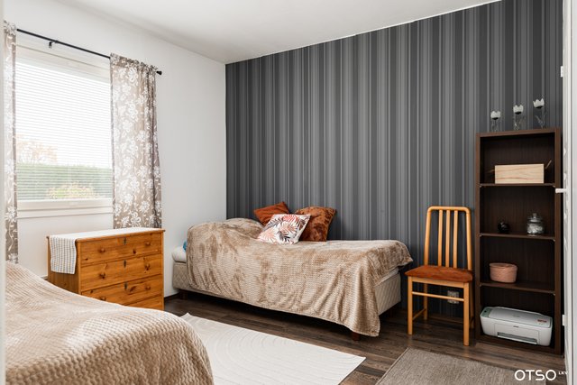 Kolme makuuhuonetta, joista yksi on hieman pienempi ja soveltuu näin ollen hyvin esimerkiksi työhuoneeksi.