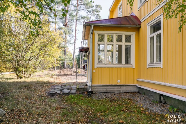- Ulkoseinät: - ulkoverhous: ponttilauta - ulkomaali: Virtasen neljän öljyn maali - ulkoverhouksen alla tervapaperi - Alakerrassa: hirsirunko - Yläkerrassa: ponttilautarunko Sisäseinät: puukuitulevy ja pinkopahvi - tapetit: paperitapetti - maalit: Uulan pellavaöljypohjaiset sisämaalit. Ikkunat: - kunnostetut 80 luvun puuikkunat - maali: Uula pellavaöljy pohjainen Väliovet: - massiivipuuovet - maali: Uula pellavaöljy pohjainen Sähkösarja: - Schneider Renova - langattomat valokatkaisimet asuintiloissa - antenniverkko