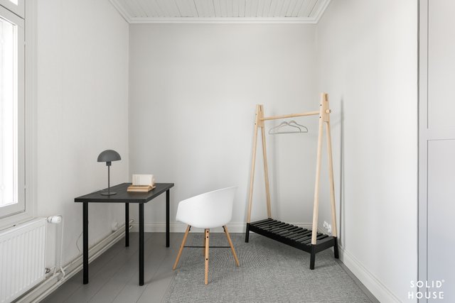 - Varustus: toisessa komerokaapistot, toisessa vaatehuone. Sisäseinä: puukuitulevy ja pinkopahvi, tapetit: paperitapetti. Lattiamateriaali: massiivilankku, maalaus: Uula pellavaöljypohjainen maali