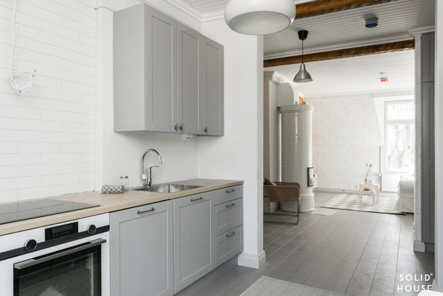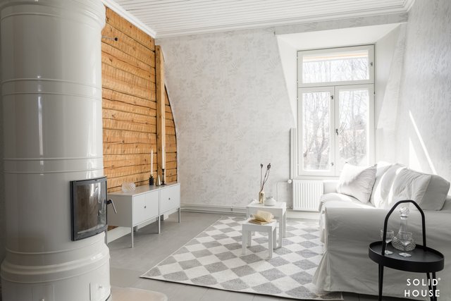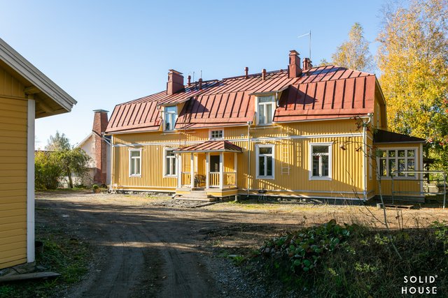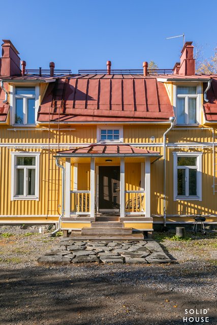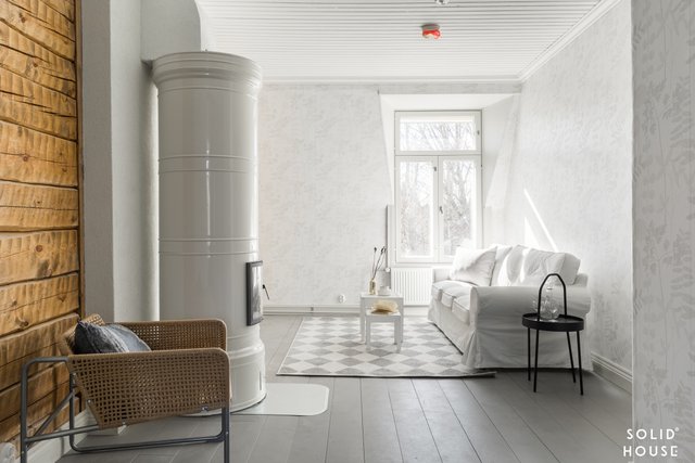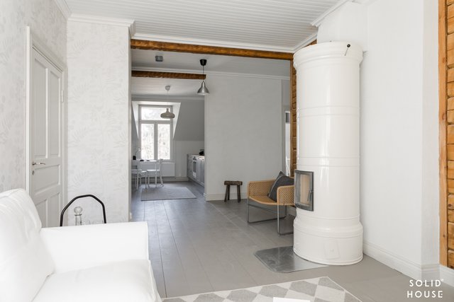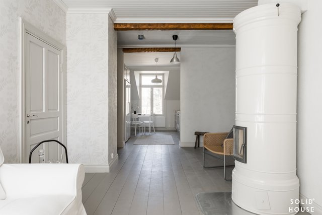 Oletko sinä tämän kodin uusi asukas? Tunnelmallisessa olohuoneessa pöhisee uusi pönttöuuni. Keittiössä on varusteena Siemensin helppokäyttöiset nykyaikaiset kodinkoneet ja tyyliin kauniisti istuvat Uniquehomen kaapistot. Kaksi makuuhuonetta sijaitsee erillään toisistaan, varustuksena on komerokaapistoa tai vaatehuone. Asunnossa on yhtenäiset, perinteikkäät ja laadukkaat pintamateriaalit, rakennus on peruskorjattu vanhaa vaalien ja perinnerakentamista kunnioittaen. Osassa huoneissa on nähtävillä vanhaa hirsiseinää, pinkopahvia ja paperitapettia. Vanhoja materiaaleja on säästetty ja uudelleen käytetty niin paljon kuin suinkin on ollut mahdollista. Huoneistossa on oma sauna, kylpyhuoneessa on modernit mukavuudet sadesuihkuineen, ja erillinen wc. Isot kolmeruutuiset ikkunat huolehtivat kodin valoisuudesta.