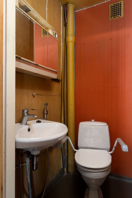 - Kaksi erillistä wc:tä, joista yksi yläkerrassa ja yksi keskikerroksesa. Wc:t vaativat remonttia.