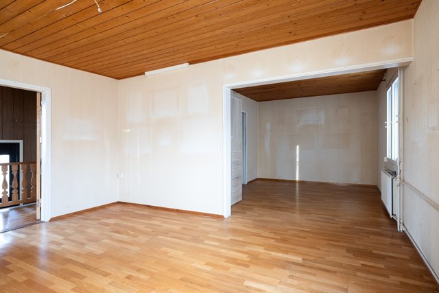 - Todella iso ja valoisa olohuone. Lattiapinnat parkettia, seinäpinnat maalattu.