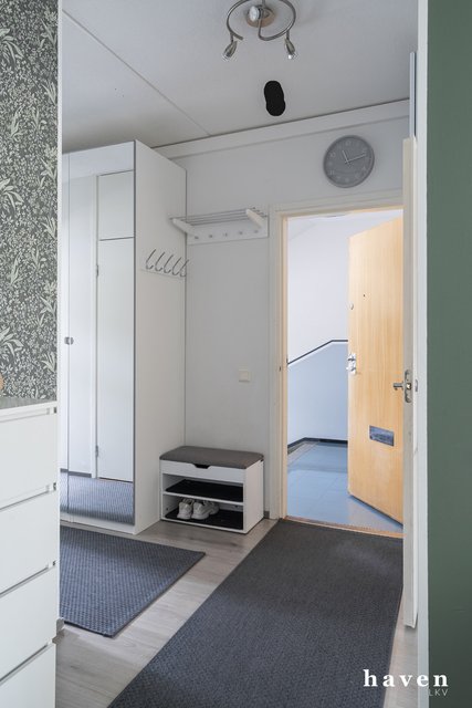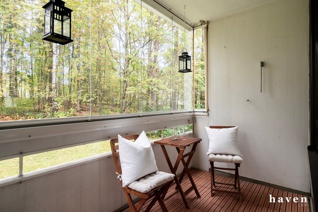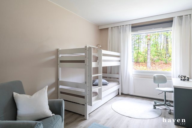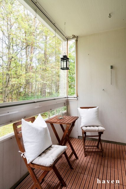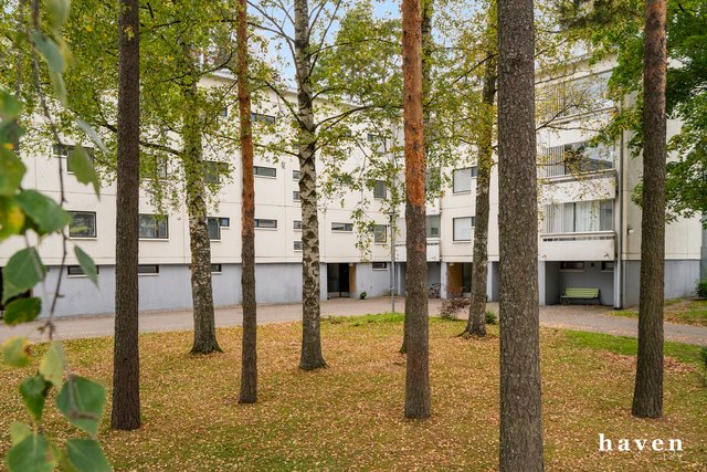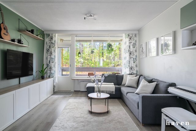 Kauniisti remontoitu ensimmäisen kerroksen (ei maan tasalla) asunto vehreillä näkymillä. Asunto on avara ja valoisa. Tilava ja toimiva keittiö, joka on remontoitu tyylikkäästi 2024 sekä iso olohuone, josta käynti metsikön suuntaan avautuvalle lasitetulle parvekkeelle. Kaksi makuuhuonetta, erillinen wc ja kylpyhuone. Huoneet ovat kivan kokoisia ja säilytystilaa on runsaasti.