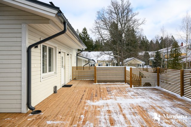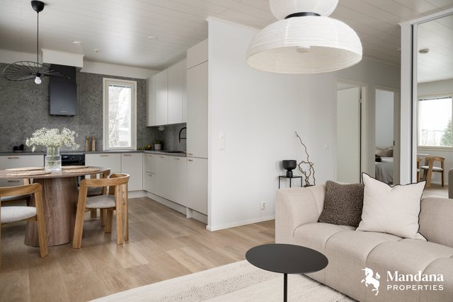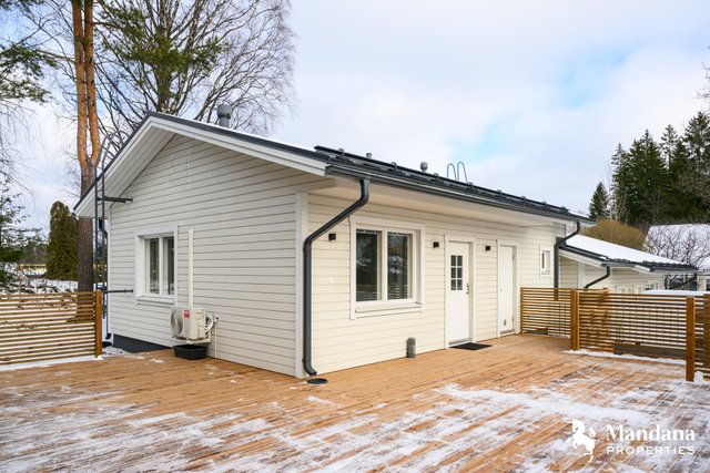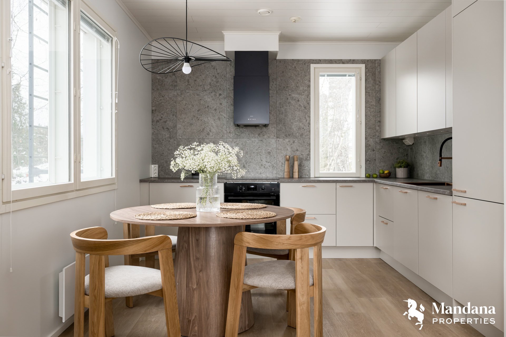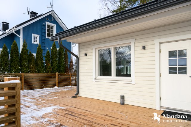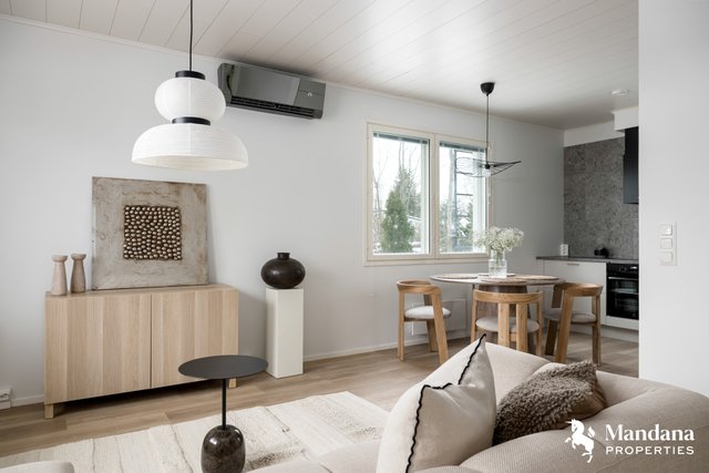 Erinomaisen hyvällä pohjaratkaisulla oleva heti vapaa ja muuttovalmis paritalon puolikas rauhalliselta Nikinmäen pientaloalueelta. Huoneistoon on tehty kattava pintaremontti alkuvuodesta 2025, jolloin etelään aukeava valtavan iso terassi on myös uusittu ja asennettu ilmalämpöpumppu (ILP), jota voi käyttää viilentämiseen ja lämmittämiseen. Oma sauna sekä kaksi autopaikkaa ja lämmin 6,5 m² varasto. Harmoninen ja moderni värimaailma sekä uutta vastaavat pinnat kruunaavat tämän kokonaisuuden.