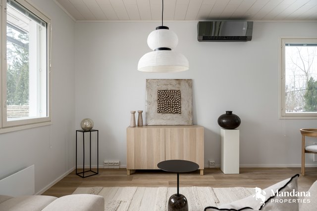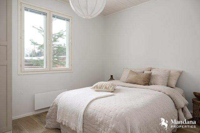 - VARUSTUS: Ilmalämpöpumppu, sälekaihtimet ikkunoissa. SEINÄT: Maali. LATTIA: Vinyyli.