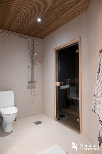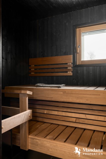 - Saunan puupanelointi, lauteet, Basebeton-lattiapinnoite sekä kiuas uusittu alkuvuodesta 2025. VARUSTUS: Sähkökiuas, lauteet valaistuksella, tuuletusikkuna. SEINÄT: Puupanelointi. LATTIA: Laatoitus Basebeton-pinnoitteella.