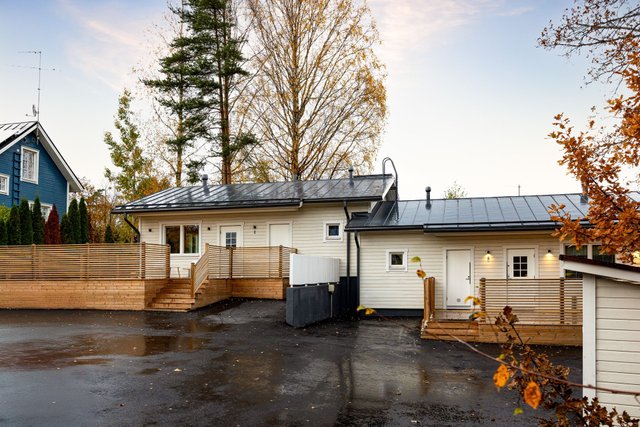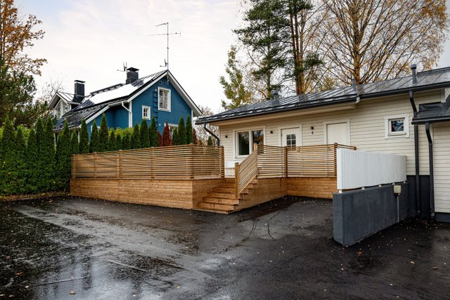 Erinomaisen hyvällä pohjaratkaisulla oleva heti vapaa ja muuttovalmis paritalon puolikas rauhalliselta Nikinmäen pientaloalueelta. Huoneistoon on tehty kattava pintaremontti alkuvuodesta 2025, jolloin etelään aukeava valtavan iso terassi on myös uusittu ja asennettu ilmalämpöpumppu (ILP), jota voi käyttää viilentämiseen ja lämmittämiseen. Oma sauna sekä kaksi autopaikkaa ja lämmin 6,5 m² varasto. Harmoninen ja moderni värimaailma sekä uutta vastaavat pinnat kruunaavat tämän kokonaisuuden.