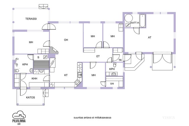 - Pinta-ala ei ole tarkistusmitattu ja todellinen pinta-ala voi olla suurempi tai pienempi, kuin ilmoitettu