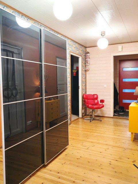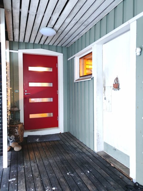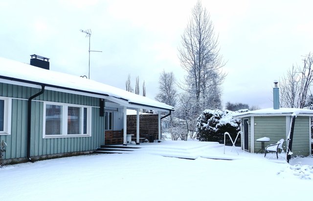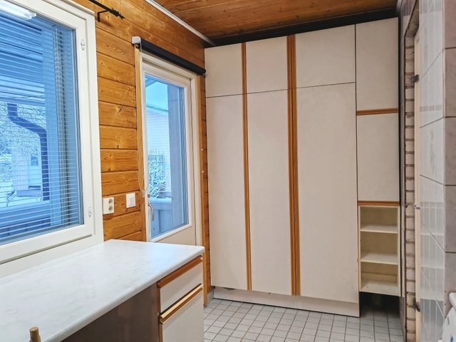- Kodinhoitohuoneesta käynti vilvoitteluterassille. Olohuoneesta käynti isolle takaterassille jonka kautta kulku myös ulkosaunalle.